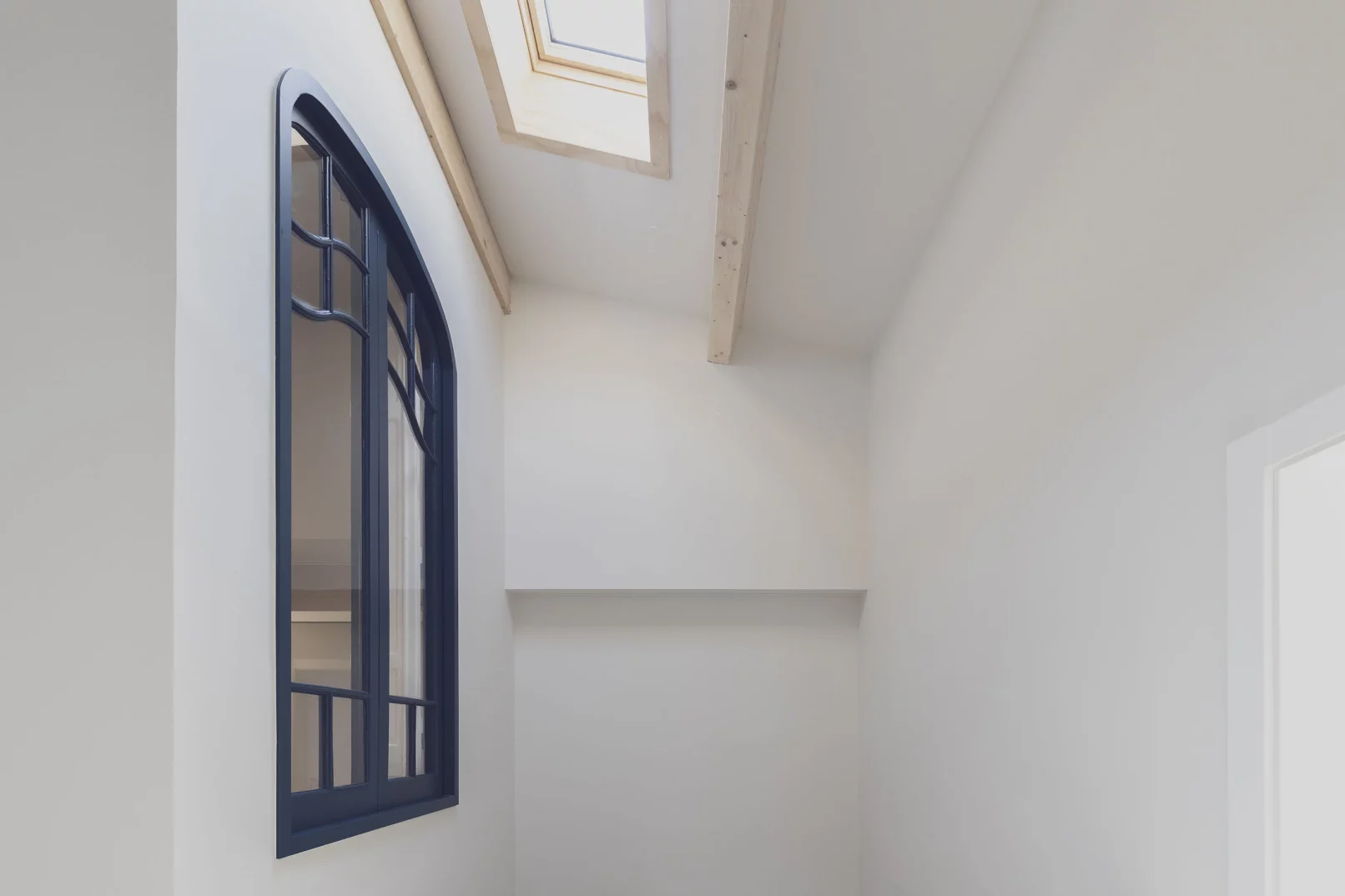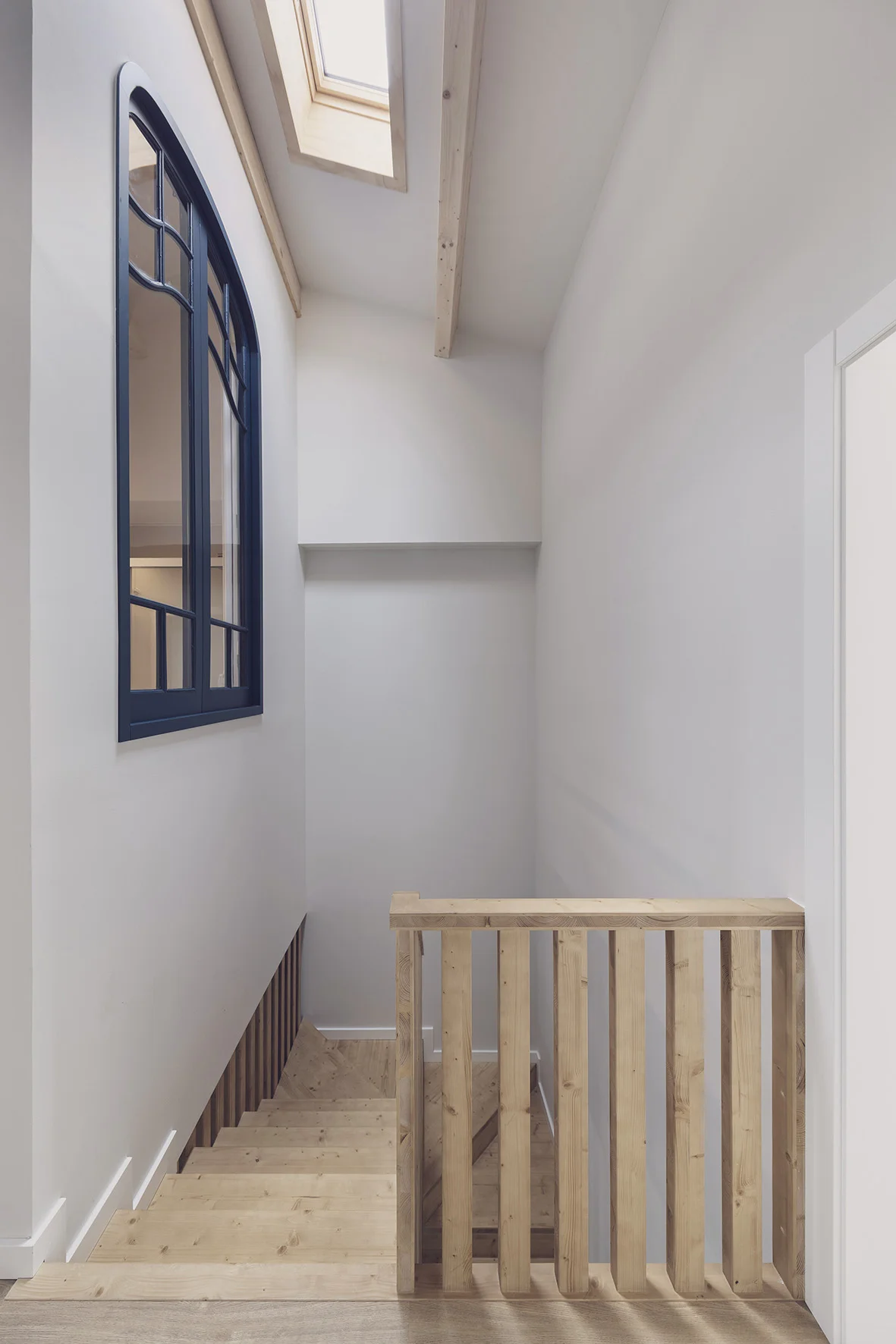 - S’afegeix una remunta a la part central de l’habitatge amb una nova escala, aprofitant el punt més alt del carener per crear un lluernari que il·lumina zenitalment el cor de l’habitatge.